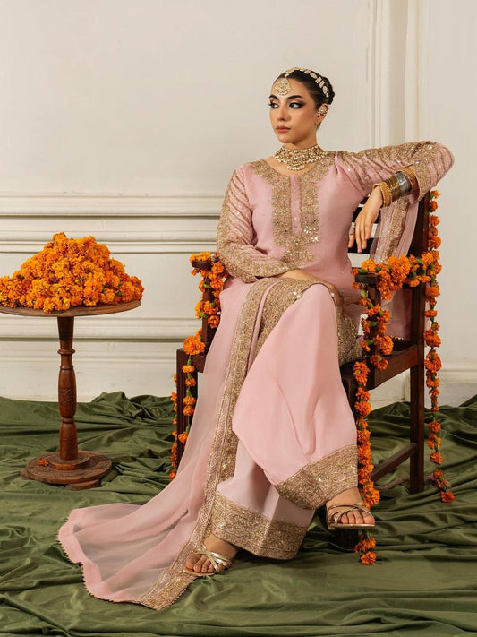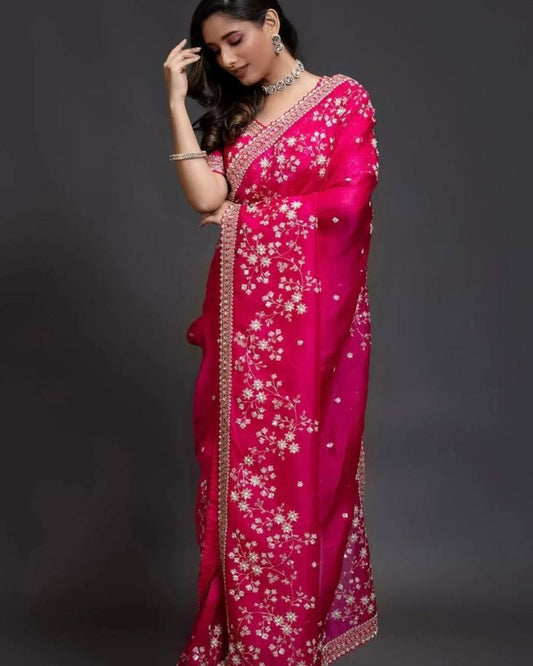 RICH CELEBRITY STYLE HANDWORK SOFT TABI FLOWER PRINT ORGANZA SAREE