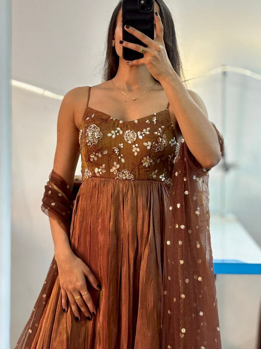 Purple New Style & Beautiful Glossy Georgette Saree-anarkali Dress With Embroidery Work