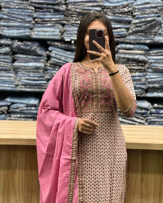 Featuring beautiful MUSLIN ALIA CUT Suit Set