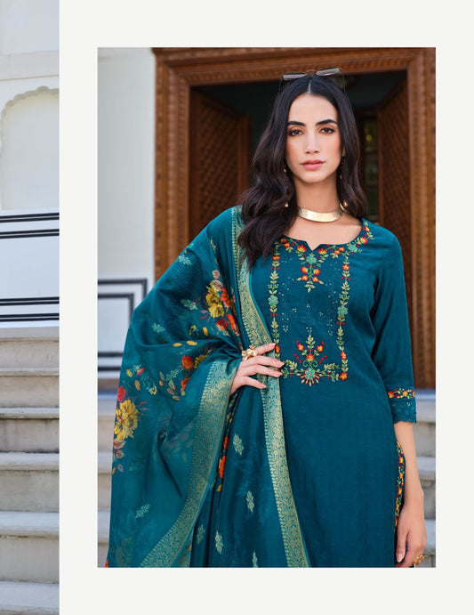 Green kurti in Embroidary Work And Jacquard Viscouse Silk
