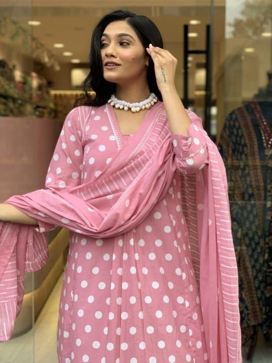 Pink Viscose Silk 3-Piece Kurti Set with Handwork & Embroidery – Elegant Festive Ethnic Wear for Women