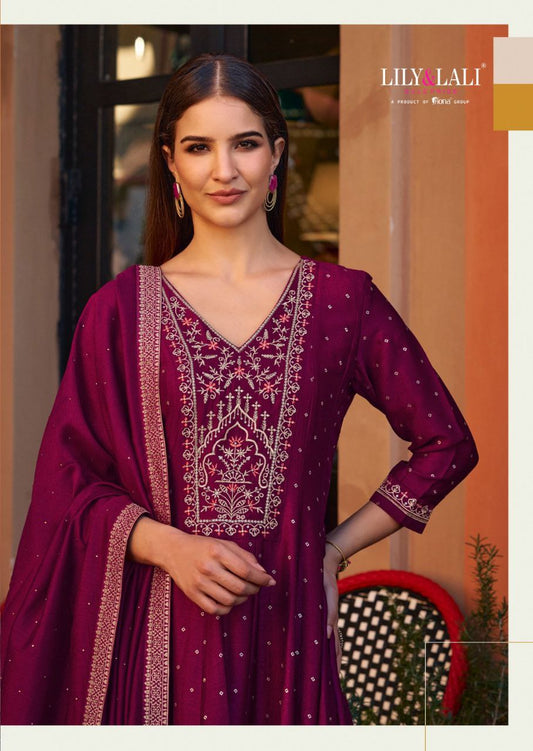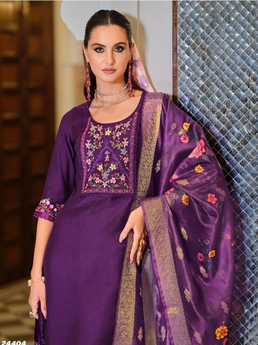 Purple Color Velvet Fabric With Embroidery Work Suit