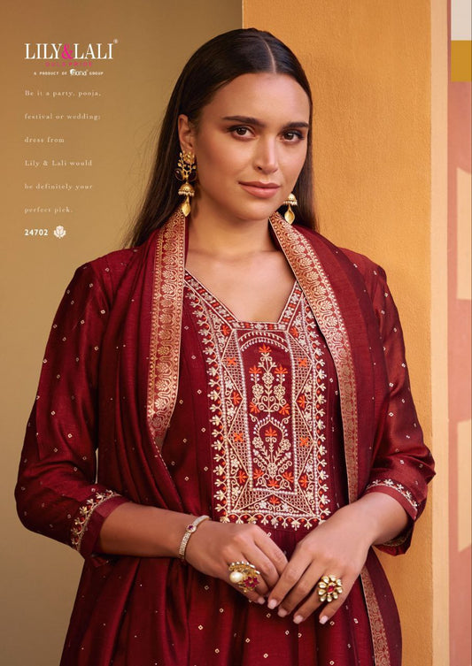 Red Kurti in Embroidery Work And Hand Work On Vicitra Silk.