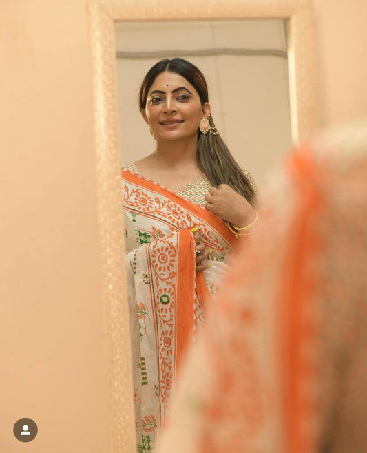 White Lilen Printed Saree – Classy Digital Design for All Occasions