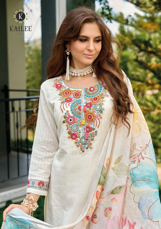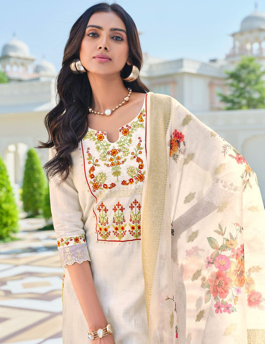 White Viscose Suit with Intricate Embroidery