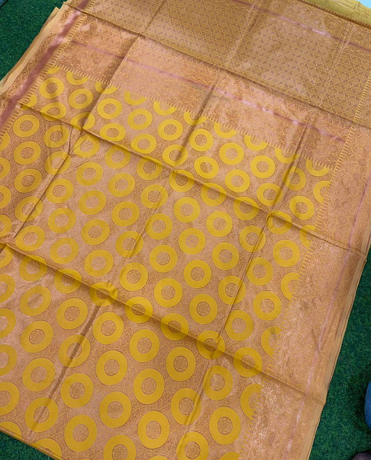 YELLOW COLOUR SOFT LICHI SILK CLOTH AND RICH PALLU & JACQUARD PATTERN WORK ON ALL OVER THE SAREE