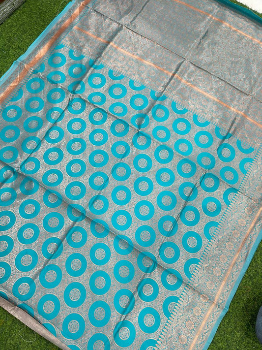 BLUE COLOUR SOFT LICHI SILK CLOTH AND RICH PALLU & JACQUARD PATTERN WORK ON ALL OVER THE SAREE