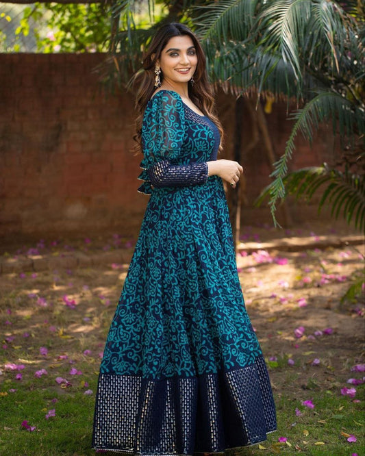 Blue Beauty Georgette With Digital printed simple fresh floral collection