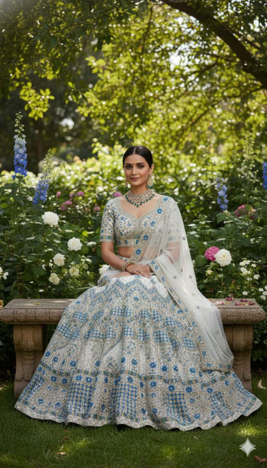 Elagance White Fox Georgette Sequins Embroidered Work Lehenga