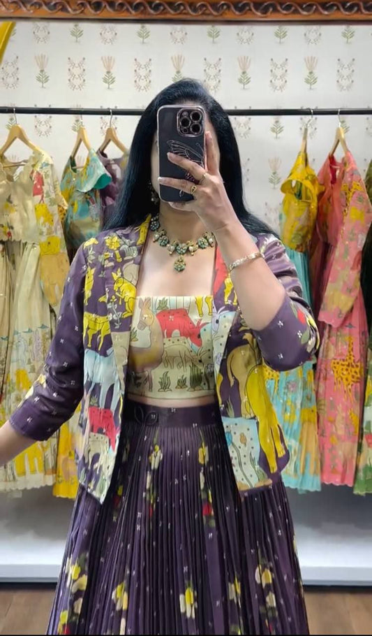 READYMADE COTTON KALAMKARI TRENDY LEHENGA WITH JACKET ONLINE