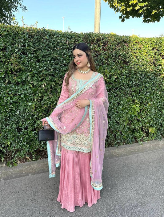 HEAVY CHINON SILK PAKISTANI SHARARA SUIT SET