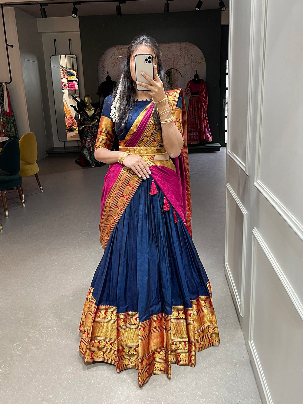 Beautiful Narayan pet (cotton) and Zari Weaving Work Traditional lehenga FV1002