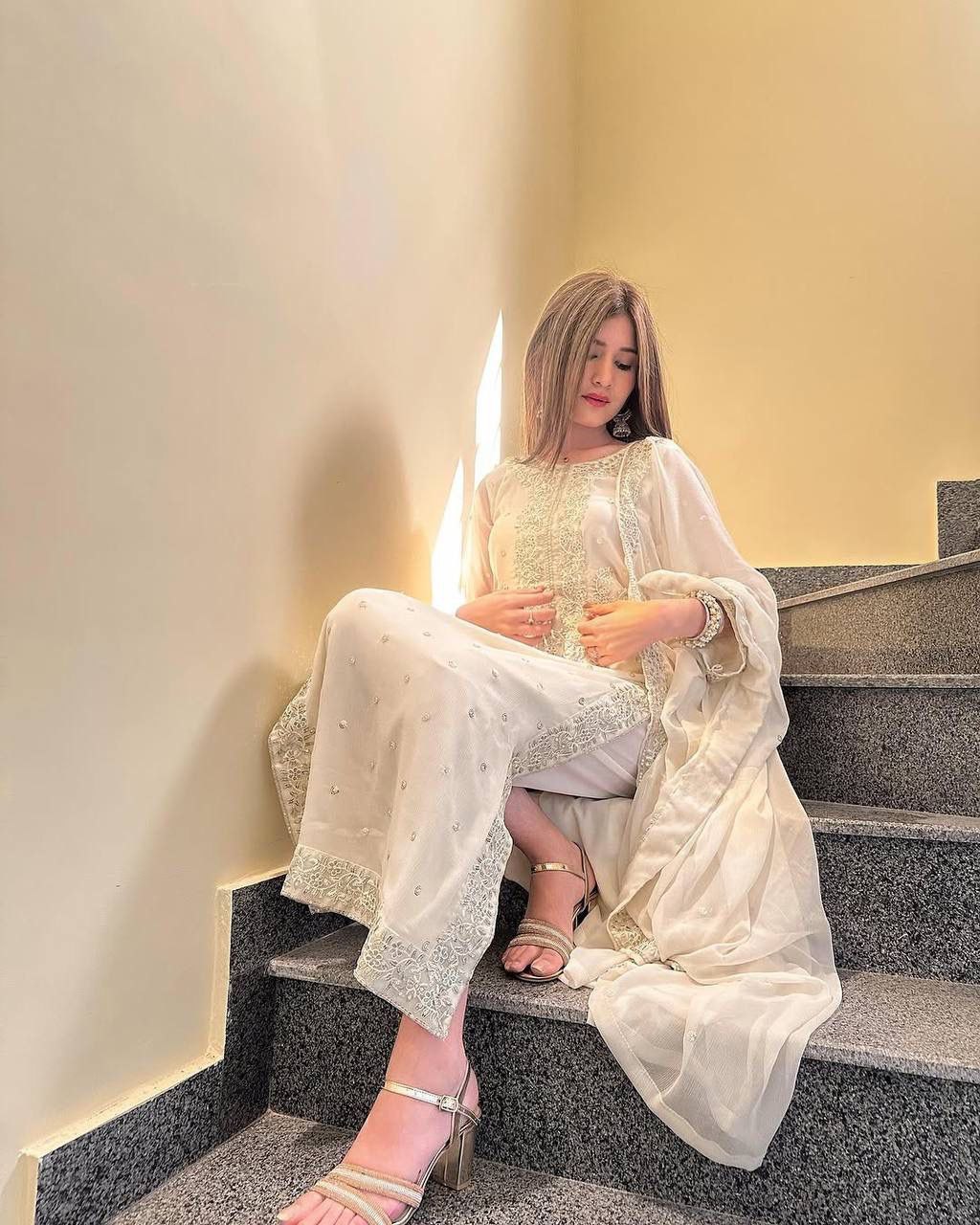 Royal white Premium Collection With Embroidery And Sequence Worked Top-Bottom And Dupatta Set