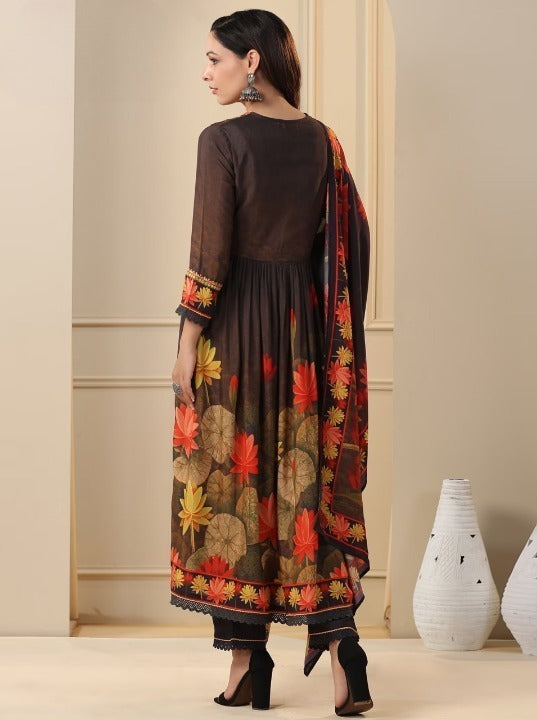 Classic Black Embroidered Suit – Chinon with Zari & Sequins