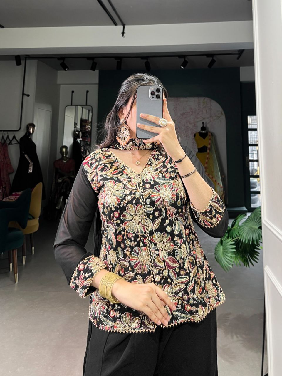 Premium Designer Black Georgette Kurta Palazzo With Dupatta For Wedding & Party